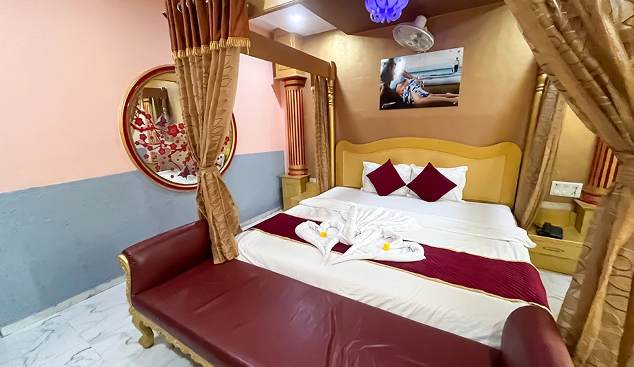 Luxuriously furnished, well appointed sensuous, colorful, exhilarating & utterly romantic suite provided with 4 poster bed, en-suite dressing room leading to attached bathroom fitted with all modern amenities i.e. LED TV, mini bar, mood lighting & leather floor. Designed for honeymooners, this suite definitely makes your dream come true with long lasting memories.
